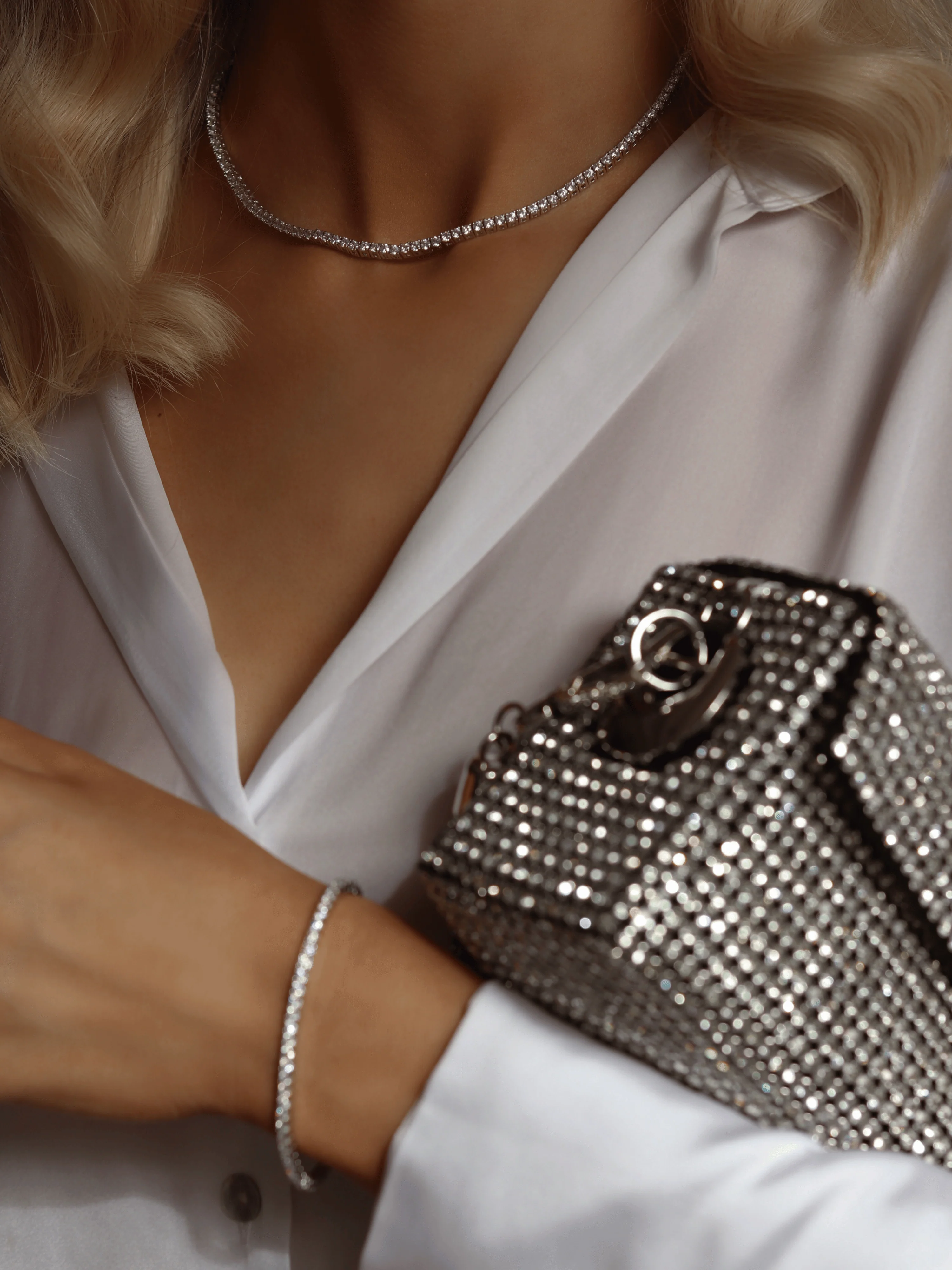 The Celeste Tennis Necklace screams luxury. Add a touch of sparkle any outfit.