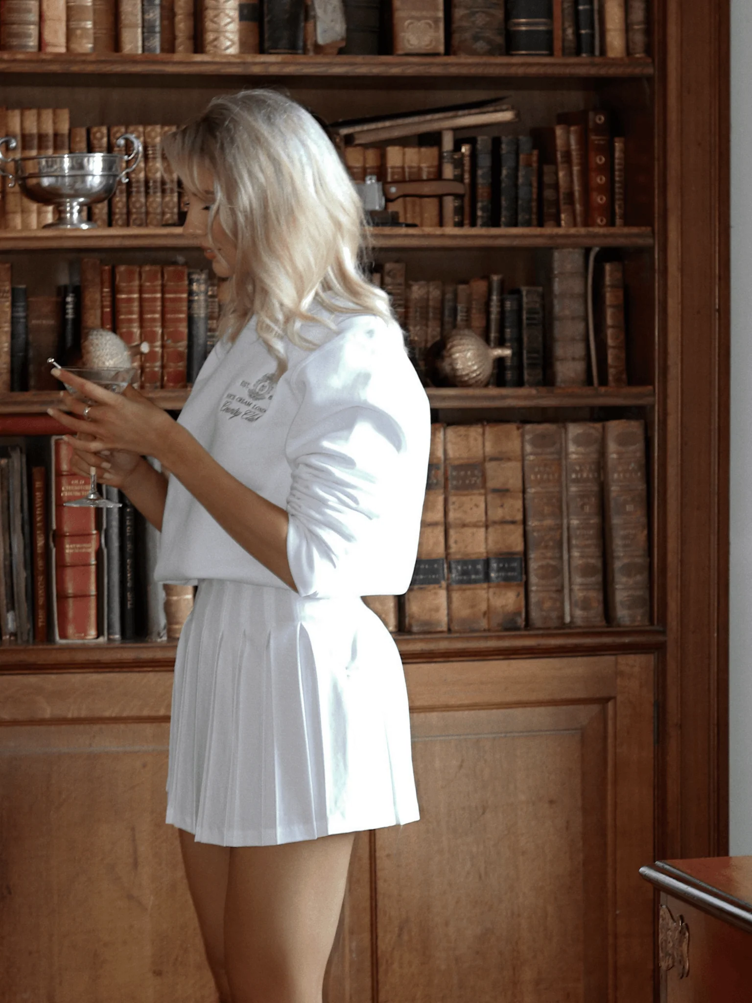 Arrive at the Country Club with this cosy, sporty sweatshirt - pairs perfectly with sportswear or a martini. Get the 'Old Money' look by draping over your shoulders whilst running errands. A staple for your wardrobe - summer or winter.