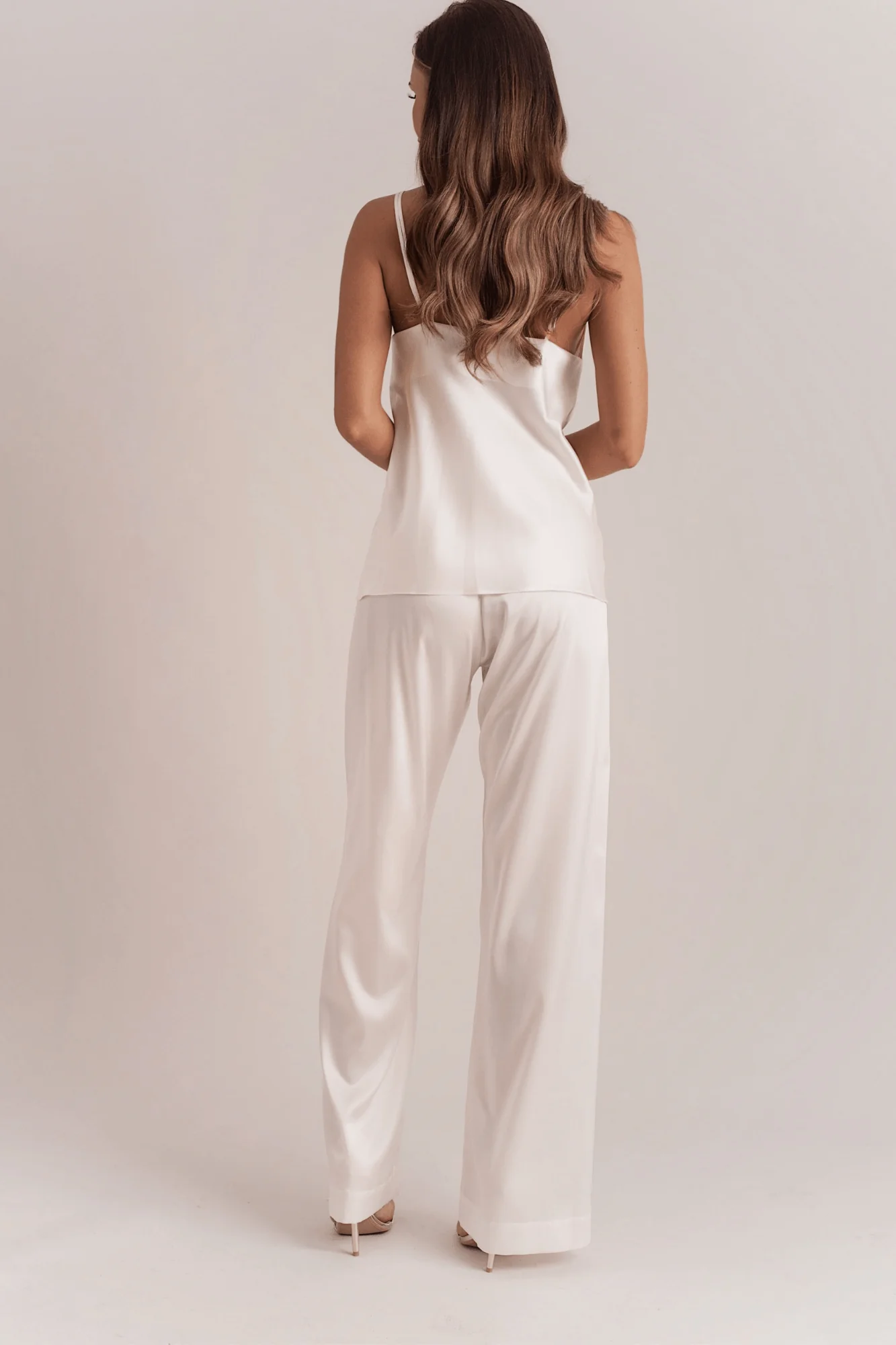 Nice Cream's Signature Couture Silk now in timeless Silk Pants. Wear the Davenport Pants with the Davenport Silk Cowl Cami for an evening look, or with a Cashmere Jumper for luxurious loungewear.