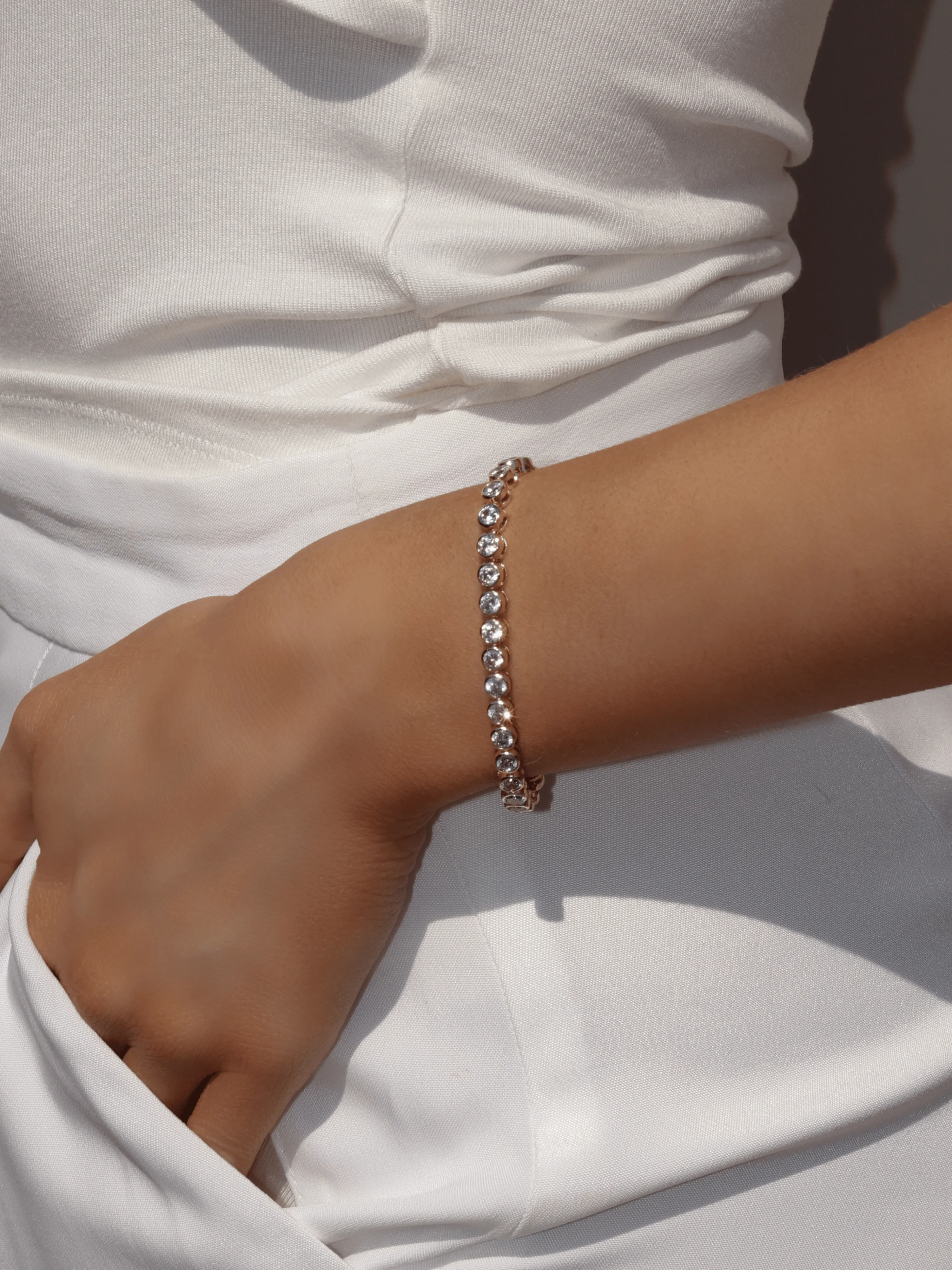 Classic. The Tennis Bracelet is a piece always worth investing in. Our Tennis Bracelet is made with expertly cut CZ stones, cut and polished using the same techniques found in fine jewellery to provide the ultimate sparkle.